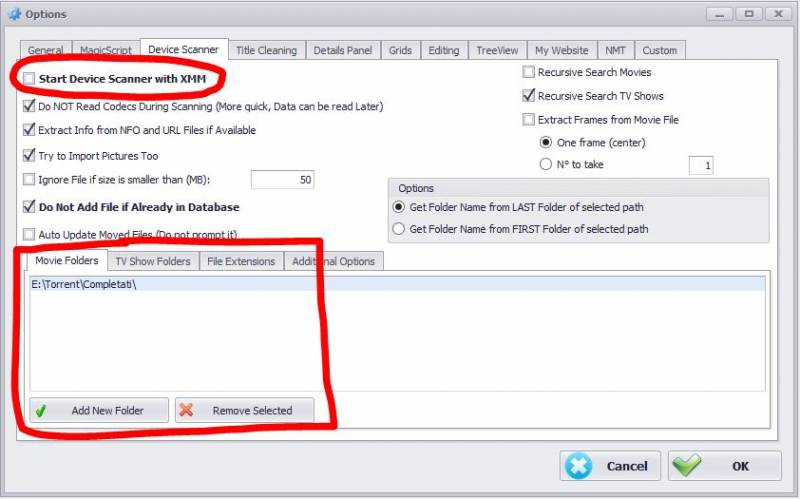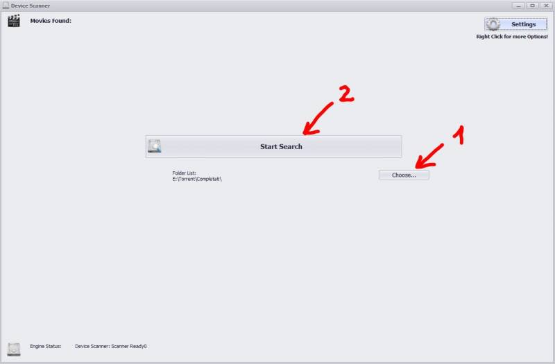 In the Device Scanner Window you have to select the folder where your movies are stored (You can select more that one folder!)