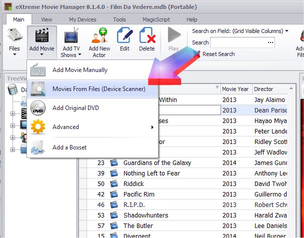 XMM can import automatically all movies stored on your hard disk. In order to do this just click on the Add Movies and then Movies from Files (Device Scanner):