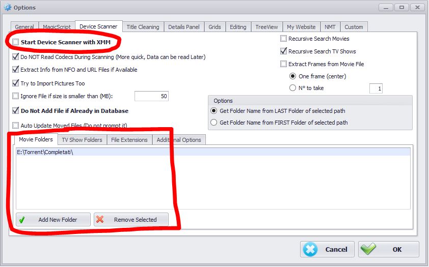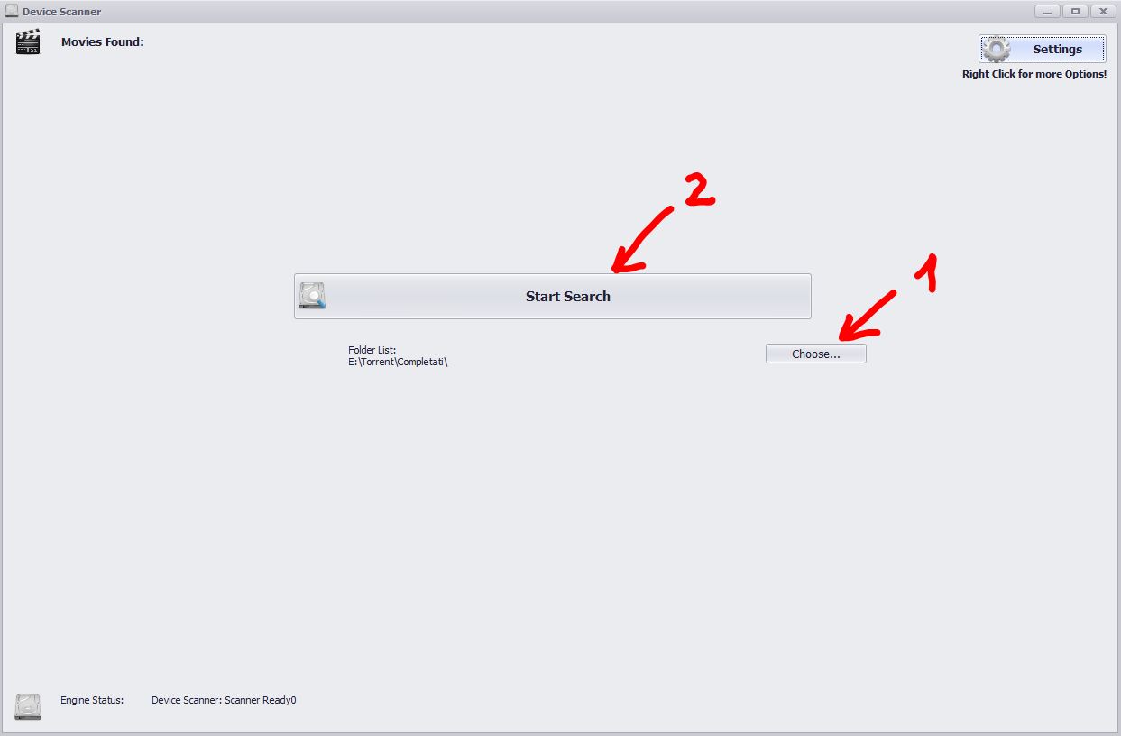In the Device Scanner Window you have to select the folder where your movies are stored (You can select more that one folder!)