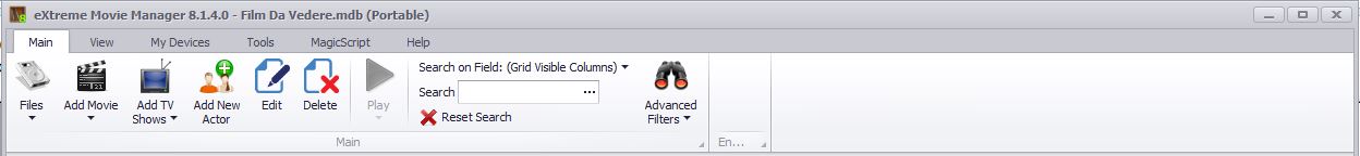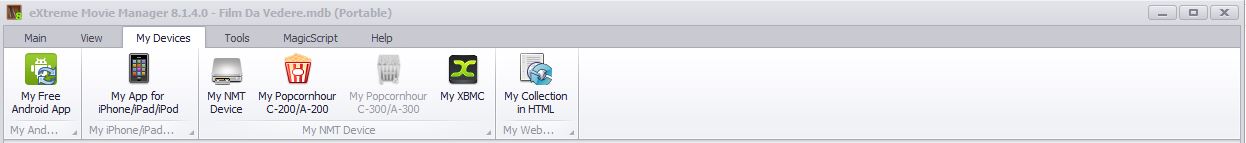 The main screen of XMM is made with “Ribbon” style, like Office 2010. The Main menu is under the File Menu: