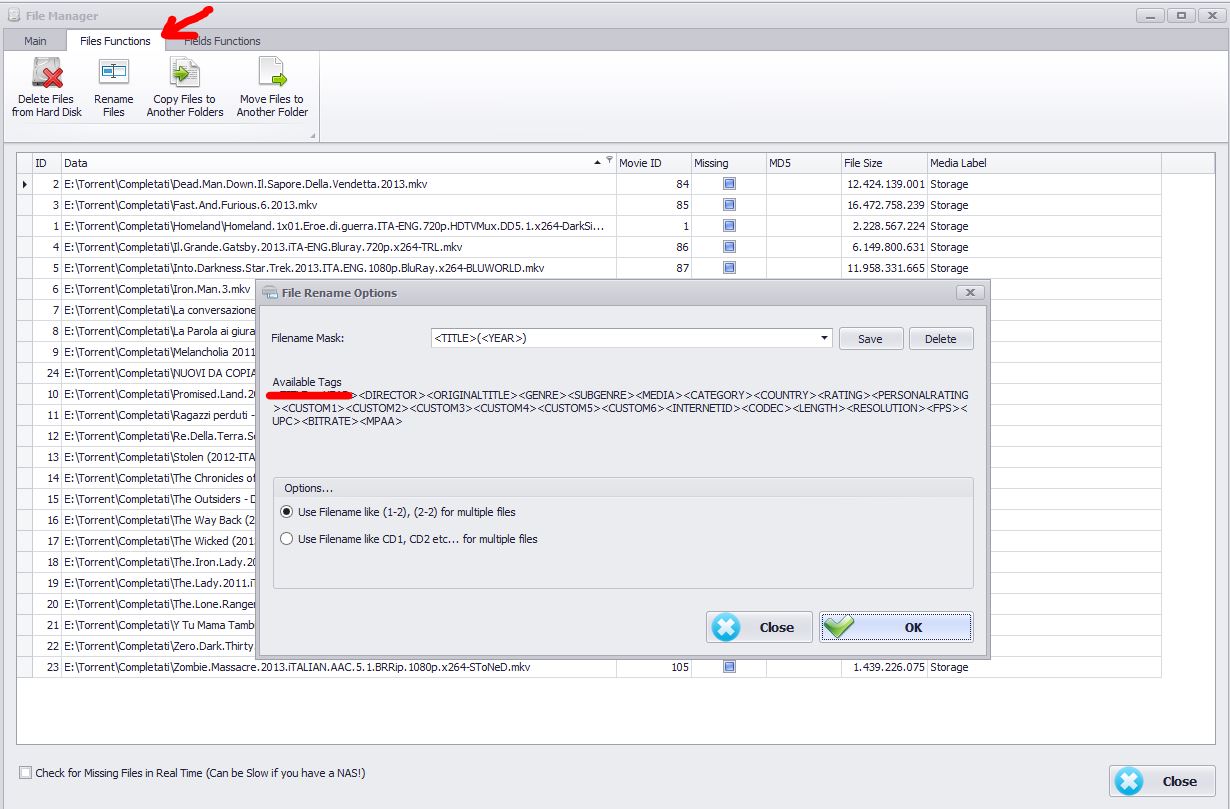 If you want rename your movie files, maybe by adding info like year, director etc… there is a function for do this automatically