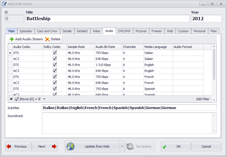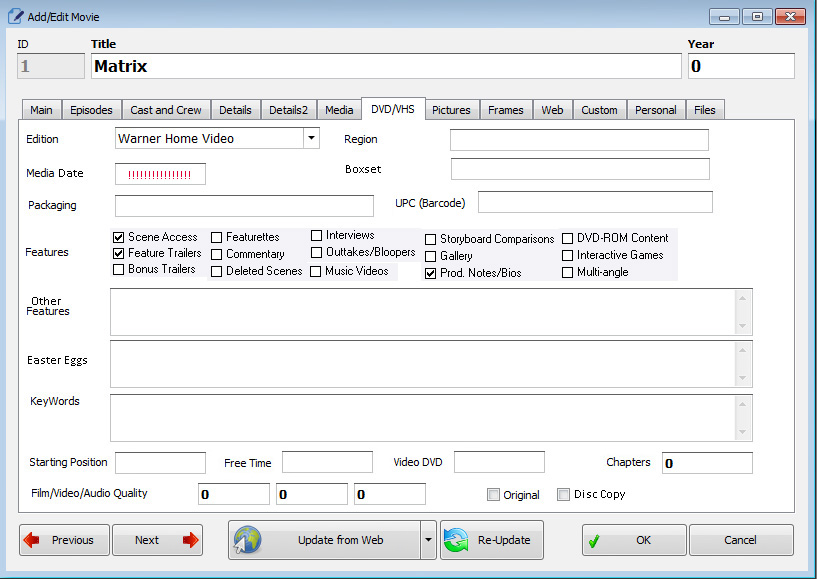 Don't you think its better put these checkbox in a List, like for "genre"? Will be more easy to add in future. Same Thing for all checkbox of DVD Features.... make fields to each entry is a pain.