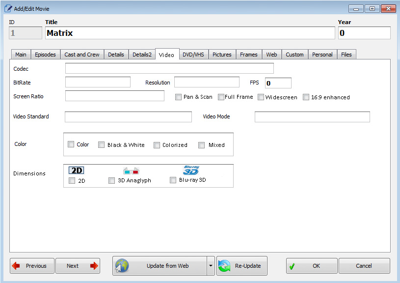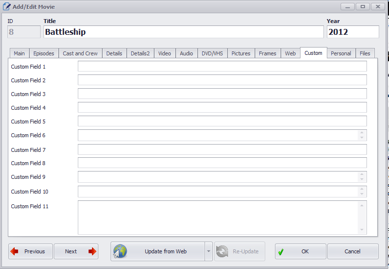 Another thing is to Edit a movie. On the main page there are now this check boxes, how can I insert there a new entry? The fields where I'm write my informations in are now very smale, what makes them not really usable. The page "DVD/VHS" should be renamed in "DVD/Blu-ray" or better in "Medium"